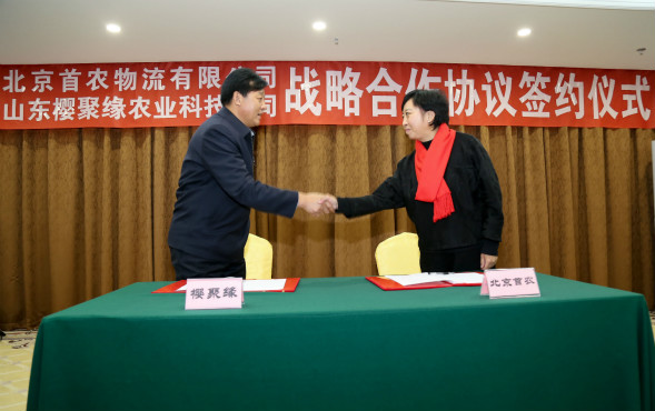 此次合作,双方签订了为期5年的战略合作协议。山东樱聚缘农业科技发展股份有限公司正式成为北京首农物流有限公司的直供基地,严格按照首农农产品供应标准进行生产、包装、运输等。双方将充分发挥各自资源优势进行合作,建设苹果及苹果加工系列产品标准化生产、加工产业,共同打造首都安全优质农产品供应基地。